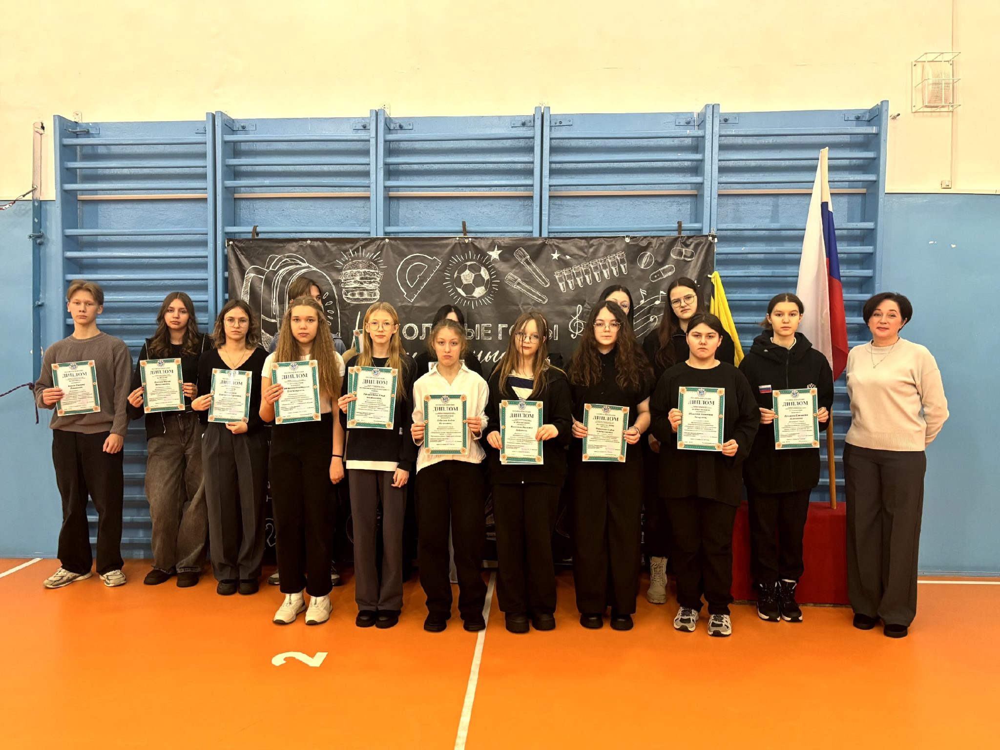 Олейникова Татьяна Анатольевна, руководитель центра «Точка Роста», вручила благодарственные письма Петровой А.С. и Кореневской С.А., педагогам дополнительного образования за активное участие в областном конкурсе проектов юных исследователей центров образования «Точка роста» и международном конкурсе исследовательских работ. За активное участие в добровольческой деятельности отмечены благодарственными письмами Сивчик Е.А. и учащиеся 2 класса, Бармин С.А. и учащиеся среднего звена, а также Иванова Н.А. педагог-библиотекарь нашей школы.Также Татьяна Анатольевна подвела итоги школьных соревнований среди Юнармейских отрядов по сборке-разборке АК-47 .